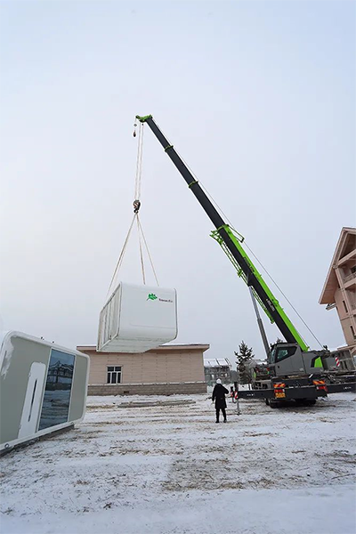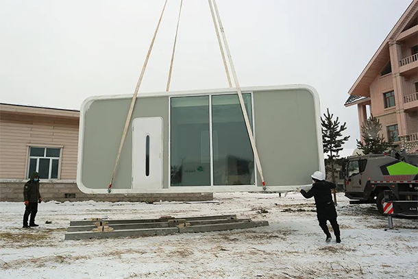 装配式“黑科技”赋能,途境发车前已在工厂完成整体装配,室内家具家电,一应俱全。抵达漠河后,产品轻量化属性,无需地基,直接整体吊装,分分钟完成房屋安装入住,省时省力。