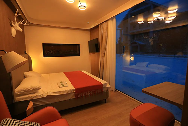 漠河途境项目即是由地暖和石墨烯加热墙板共同发热所维持,装置可设定最佳人体适应温度,由可调温智能控制器实时调节。