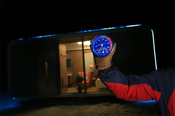 身处极端低温环境,监测数据显示,途境室内温度始终保持在24℃左右,室内家电家居正常运转,完美抵御冰雪严寒,见证保温隔热硬实力。