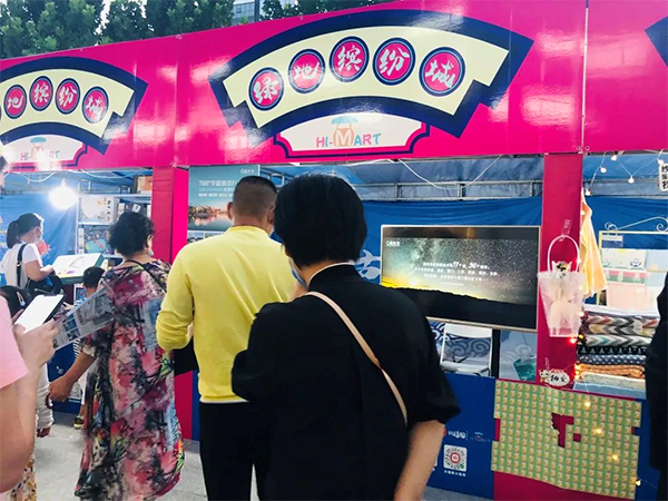 在市集涌动的人潮与喧嚣叫嚷声中,趣悠悠摊位前聚集了不少围观市民,被品牌视频里的网红民宿所吸引。