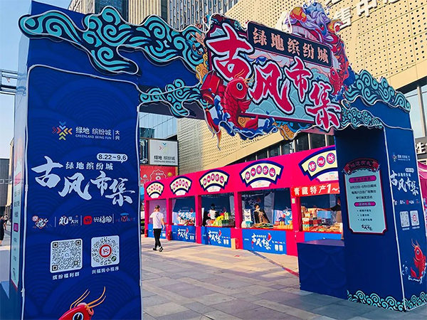 古风文化市集在北京大兴绿地缤纷城举行,在快节奏的都市生活里开辟一处古韵国潮的聚集地,形成集购物休闲、特色餐饮、文体休闲、观光游憩一体的创意集市,吸引了大量品牌与商家进驻。