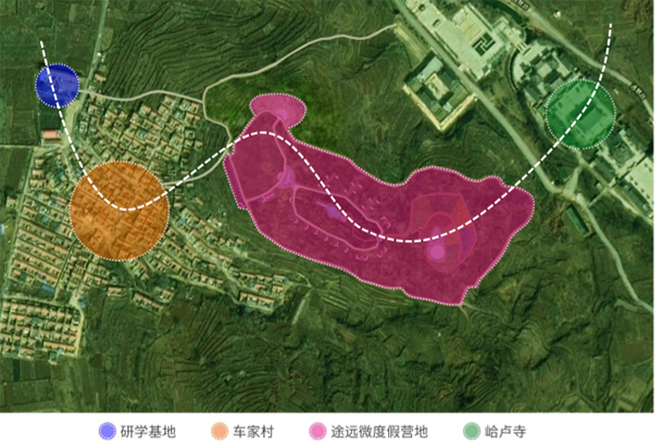 途远“两途一趣”乡村振兴模式通过深挖福山生态、禅宗、古村等资源,在张格庄镇车家村打造“禅驿庄园”,项目占地约90亩,紧邻千年名刹——福山峆㠠寺与车家村樱桃农业生态园。